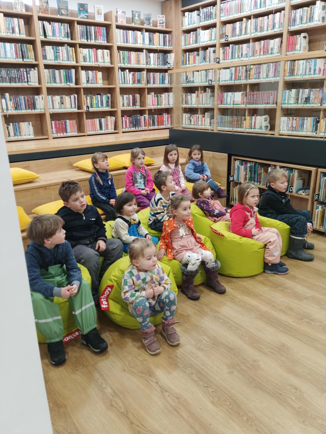 Sice ještě neumíme číst, ale v knihovně se nám mooooc líbilo. Povídali jsme si s paní knihovnicí o pohádkách, které máme rádi a taky nám nějaké četla. Pak jsme si mohli knížky prohlédnout :))