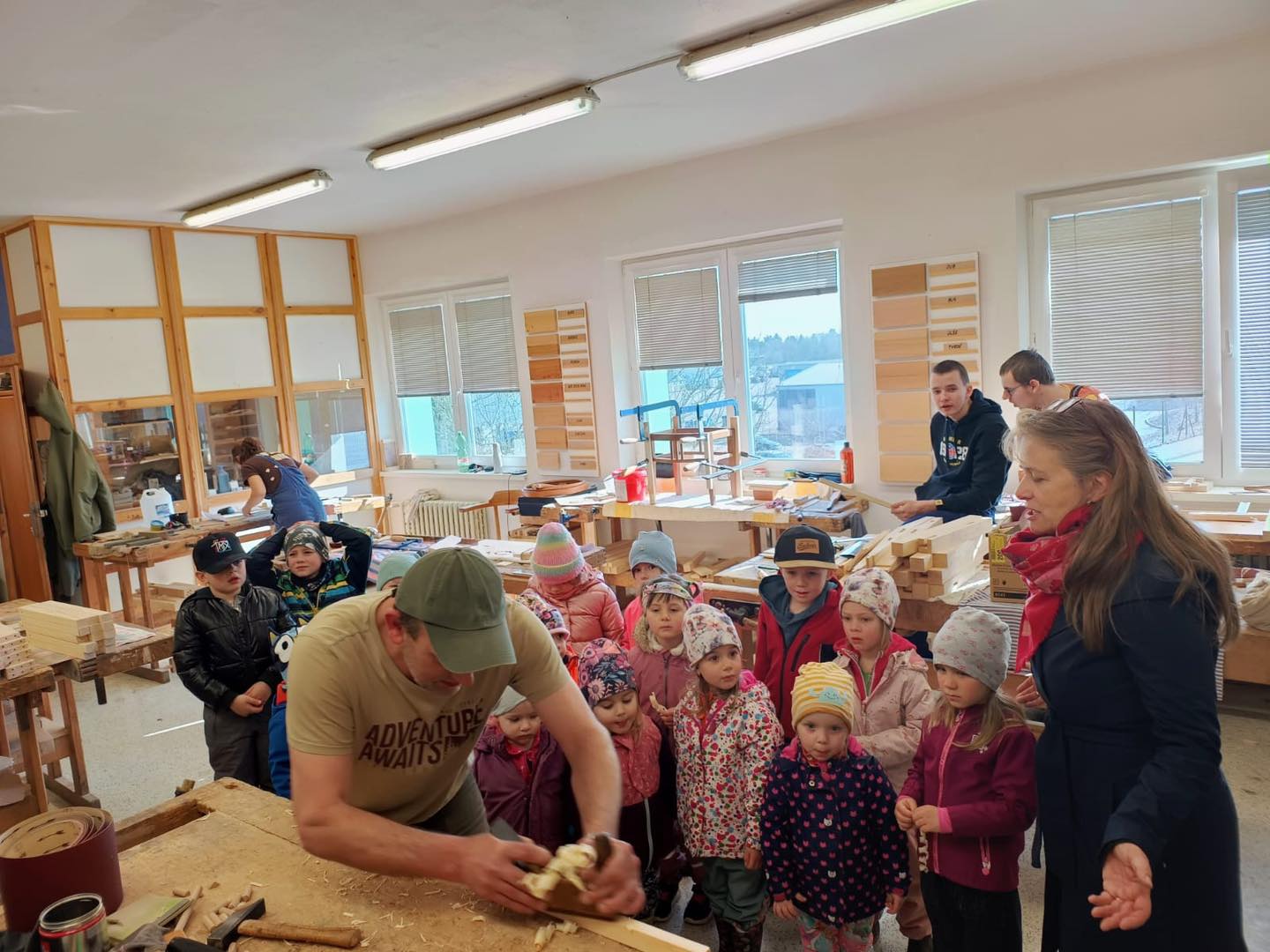 Děti z MŠ Velechvín se byly podívat v učilišti Lišov u truhlářů a čalouníků. Dozvěděli jsme se, co je to hoblík a udělali jsme si taky vlastní polštářek :)